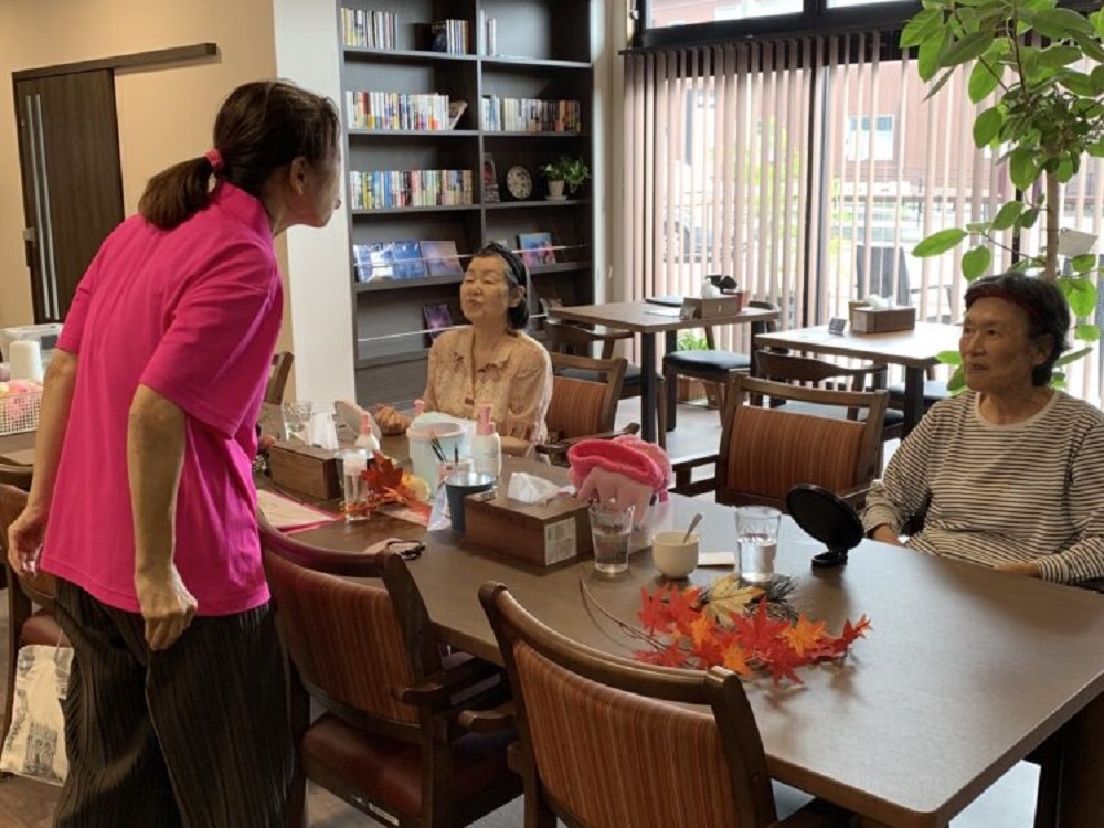 ①9月9日「フラワーアレンジメント」②9月17日「メイク教室」③9月19日「ノルディック体操」と盛りだくさんの内容になっております。カルチャーを楽しみに来てくださるお客様もおり、充実した時間を楽しんでいただけているご様子でした。