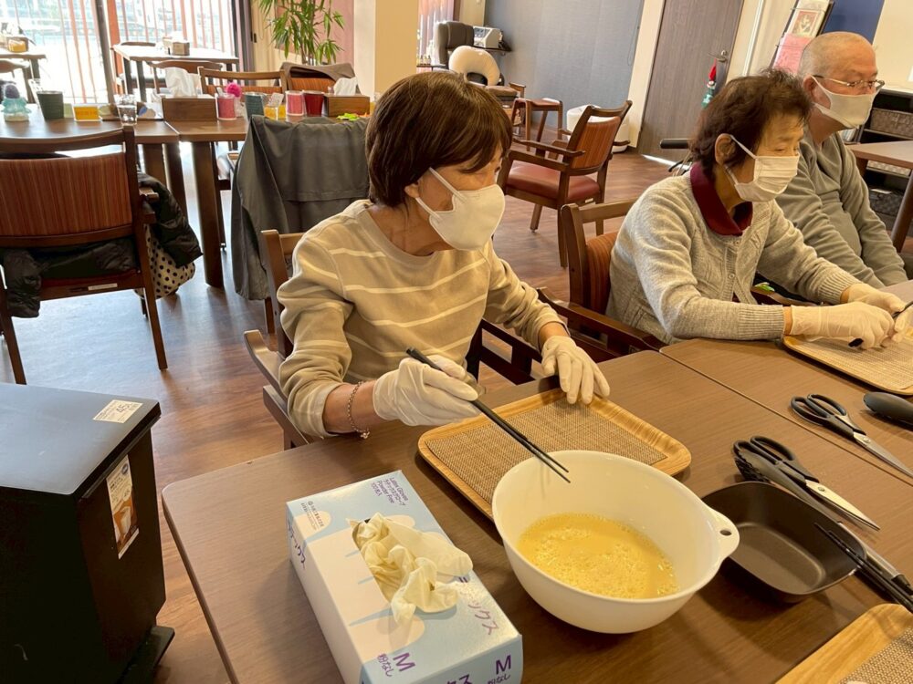 「匂いもいいですね」「今度お家で作ろうかしら」と言われていました。今回は「フレンチトースト」でした。初めての方も作ったことがある方もいて楽しい時間が過ごせました。