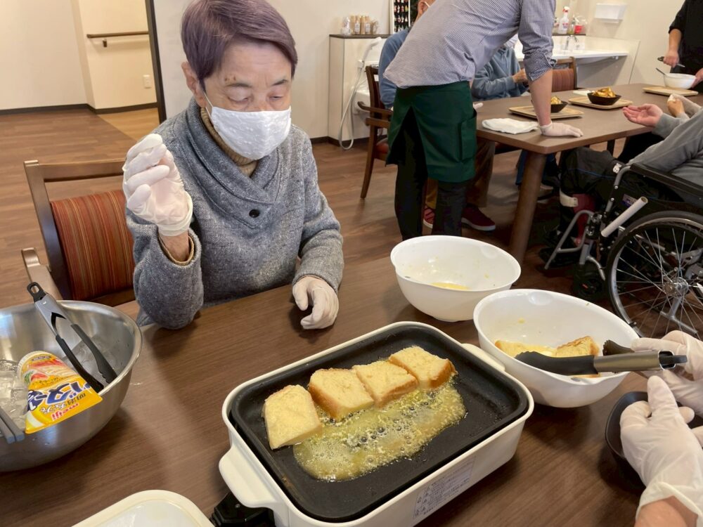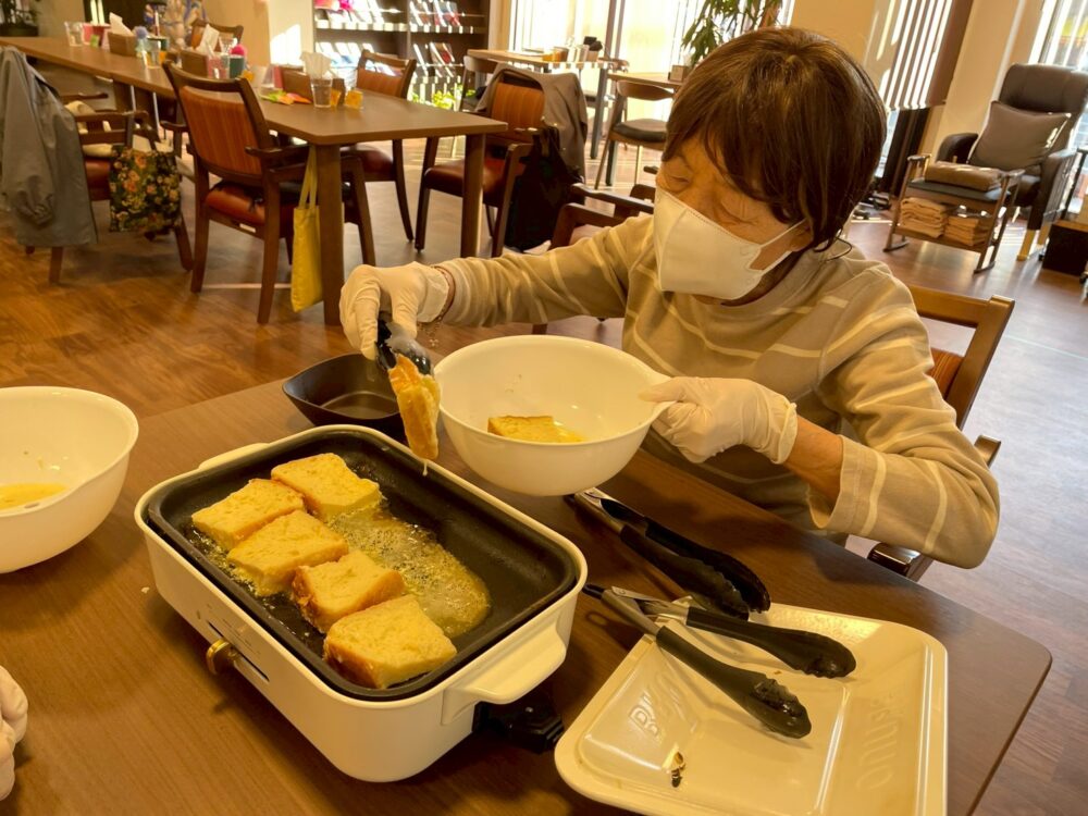 毎月「クッキング教室」も実施しています。今回は「フレンチトースト」のご様子を紹介いたします。