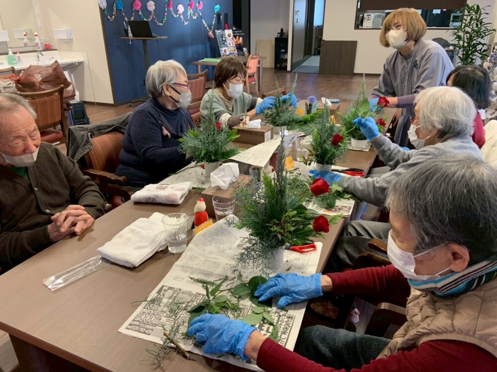 第2木曜日にカルチャー講師による「フラワーアレンジメント」を開催しています。お客様の中には花道の経験がある方も多く、「昔はやっていました」「今でも教室に通ってますよ」と楽しまれている様子でした。