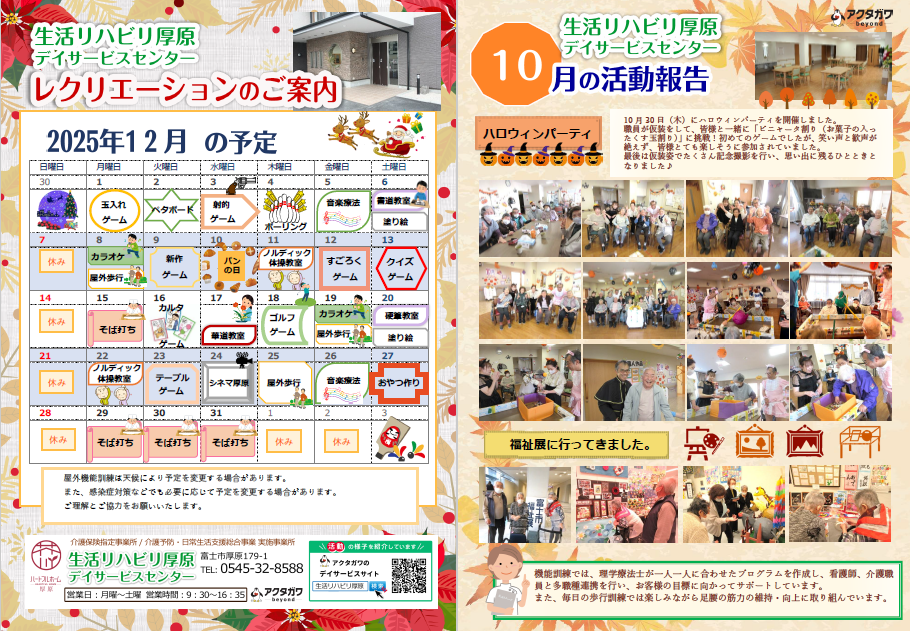 2025年12月のレクリエーションスケジュールはこちら(PDF)