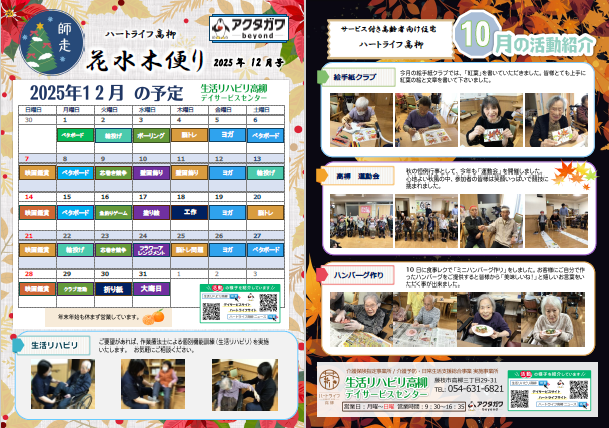 2025年12月のレクリエーションスケジュールはこちら(PDF)