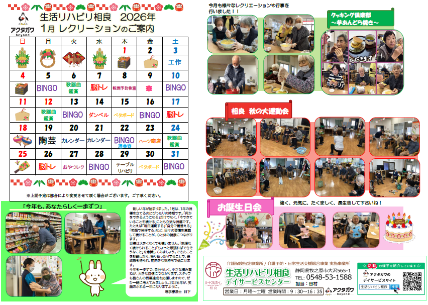 2026年1月のレクリエーションスケジュールはこちら(PDF)