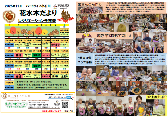 2025年11月のレクリエーションスケジュールはこちら(PDF)