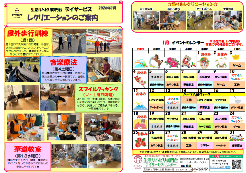 2026年1月のレクリエーションスケジュールはこちら(PDF)