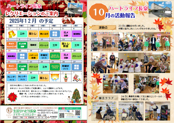 2025年12月のレクリエーションスケジュールはこちら(PDF)
