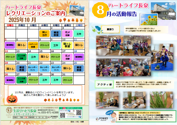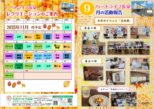 2025年11月のレクリエーションスケジュールはこちら(PDF)