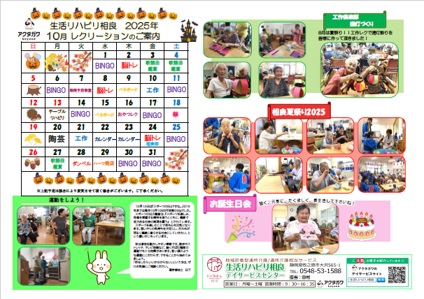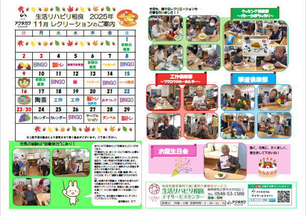 2025年11月のレクリエーションスケジュールはこちら(PDF)