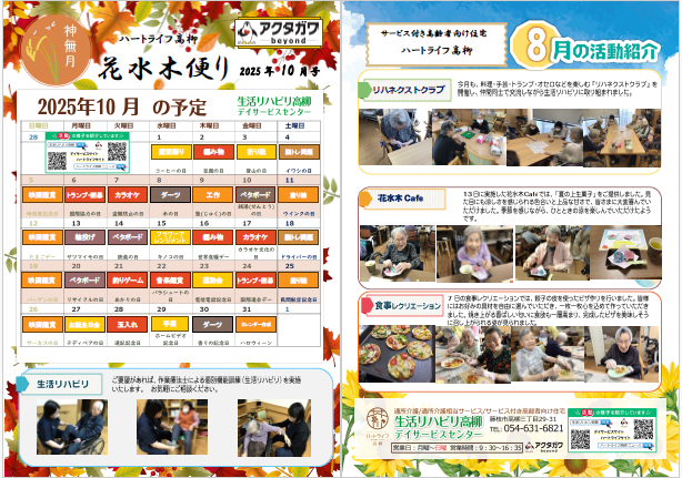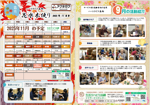 2025年11月のレクリエーションスケジュールはこちら(PDF)