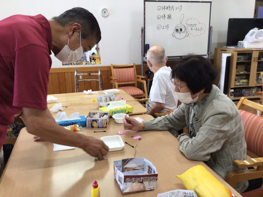 牧之原市にあるアクタガワ生活リハビリ相良デイサービスセンターでは、毎月工作レクリエーションを実施しています。9月15日は敬老の日です。高齢者へ長寿の願いを込める意味合いで縁起がいいとされる「フクロウ」をモチーフにしたキーホルダーを作成しました。その様子をご紹介させていただきます。