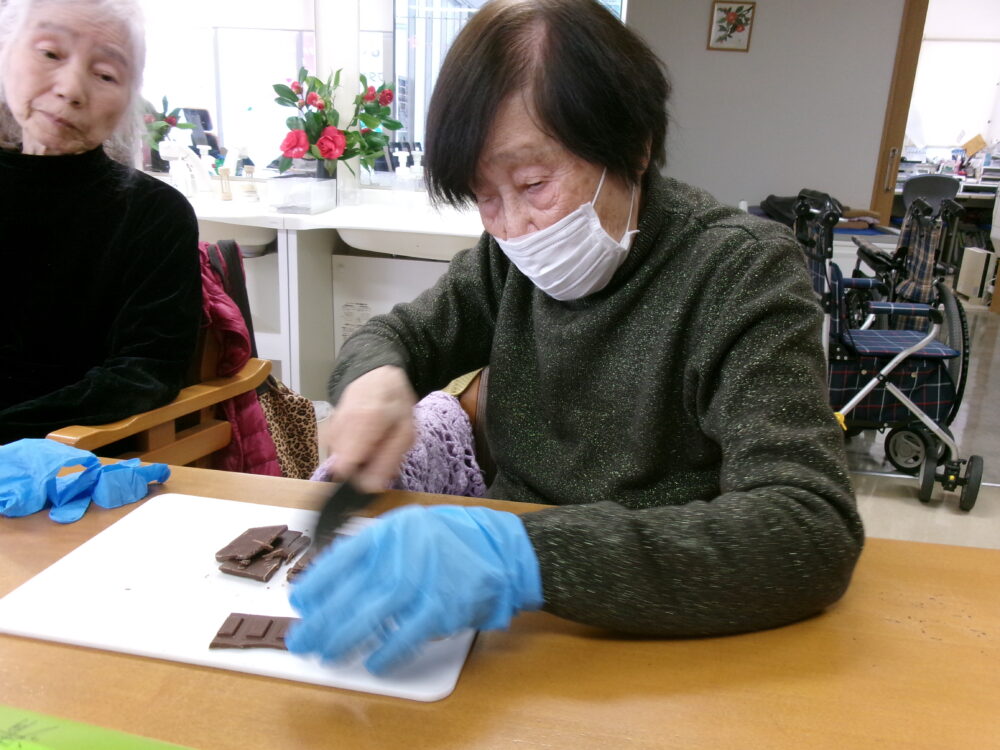 生活リハビリ清水銀座では、バレンタインのお祝いとしてチョコレートパウンドケーキをお客様と一緒に作りました。バレンタインと聞くと、日本の文化では女性から男性に贈り物(主にチョコレート)を送る文化として今でも祝われていますが、諸外国では男性から贈り物をする国もあるそうです。