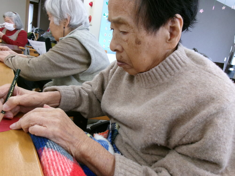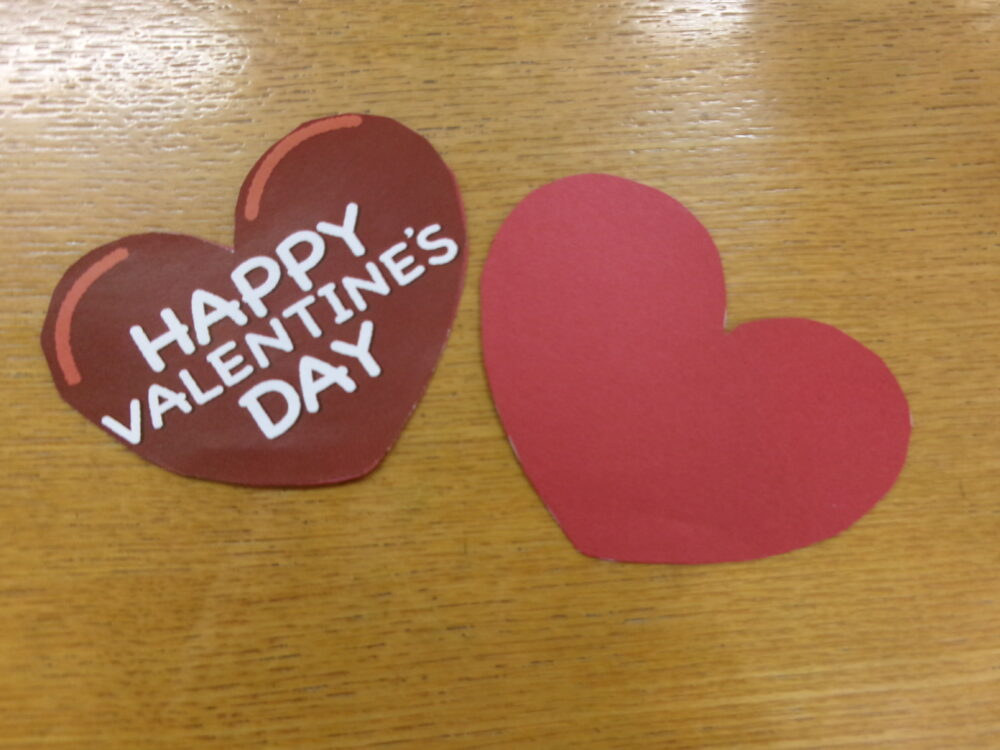 今回のバレンタインのテーマとして、”大切な人に贈る”をテーマにメッセージカードも作っていただきました。面と向かってありがとうの気持ちを伝えるのは少し照れてしまう事もあると思います。その為、今回描いて頂いたメッセージカードは連絡帳にそっと入れさせていただきました。