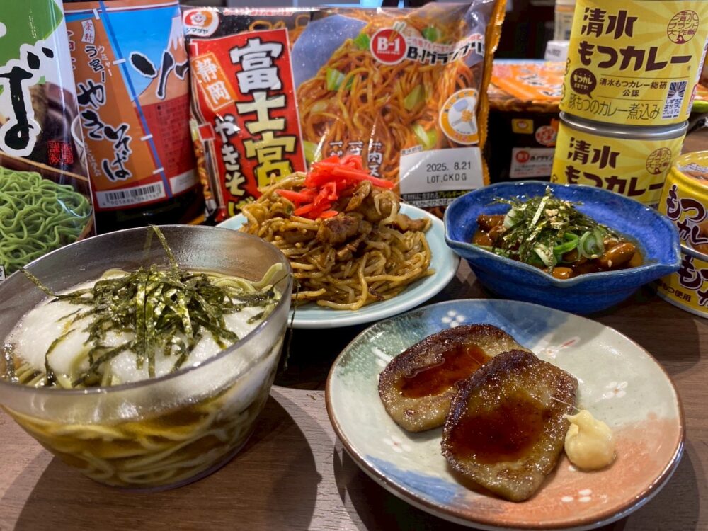 その他、とろろ茶蕎麦・黒はんぺん焼き・モツカレー・静岡のお土産菓子などもご用意し、おもてなしさせていただきました。