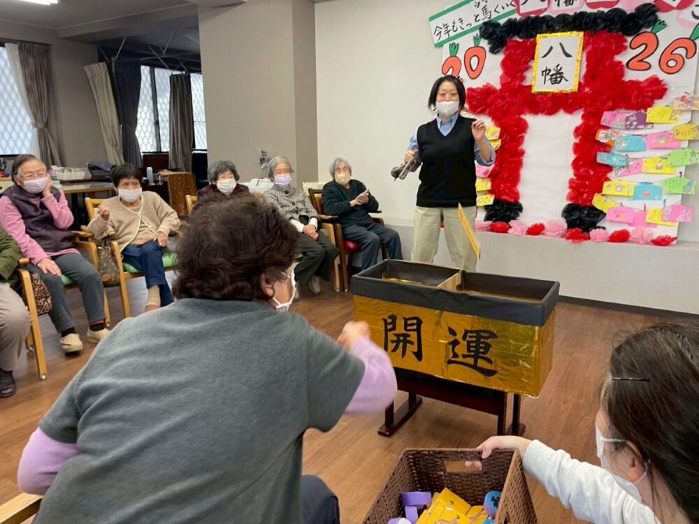 静岡市駿河区の生活リハビリ八幡デイサービスでは、毎月季節のイベントを実施しております。1月の新春イベントは午年に因んで「今年もきっと馬くいく!八幡de福招き」と題して、午前中はお料理レク、午後はリハビリゲームと、2026年第1回目に相応しい大盛り上がりなイベントとなりました。その時のご様子をご紹介いたします。